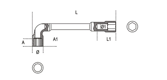 BETA Offset Hexagon Socket Wrench - 12mm Polished Chrom