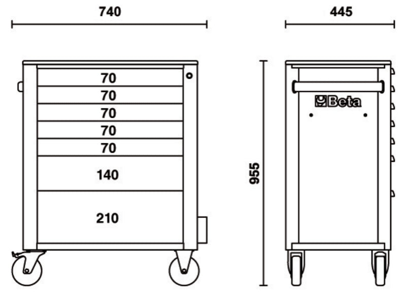 - Seven drawers (588x367 mm) with ball bearing guides:
