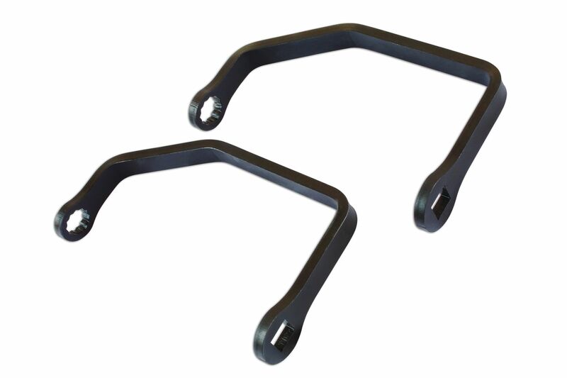 A pair of crows feet type wrenches designed to fit Ducati cylinder head nuts. The applications are extensive with the 14mm wrench being for post 2005 machines and the 15mm wrench being for 2002 to 2005.