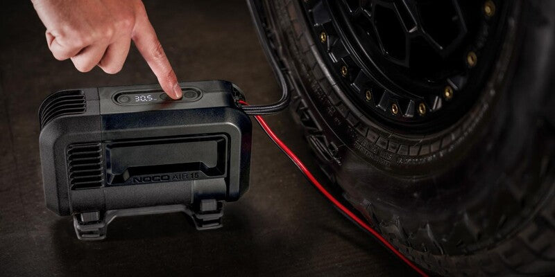 Introducing NOCO AIR15 a 12-volt, 15-amp portable air compressor with a 200-watt motor rated at a maximum pressure of 80 PSI. AIR15 is the next generation of portable air compressors, utilizing advanced motor and airflow design for tires up to 33-inches. It runs longer, fills faster, and is infinitely better.