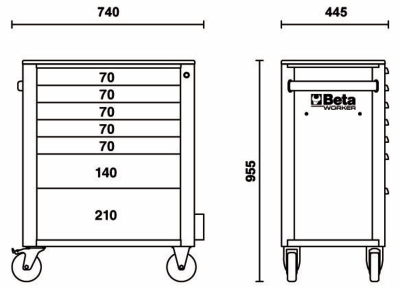- ∅ 4 wheels 125 mm (2 fixed – 2 swivel equipped with a brake)