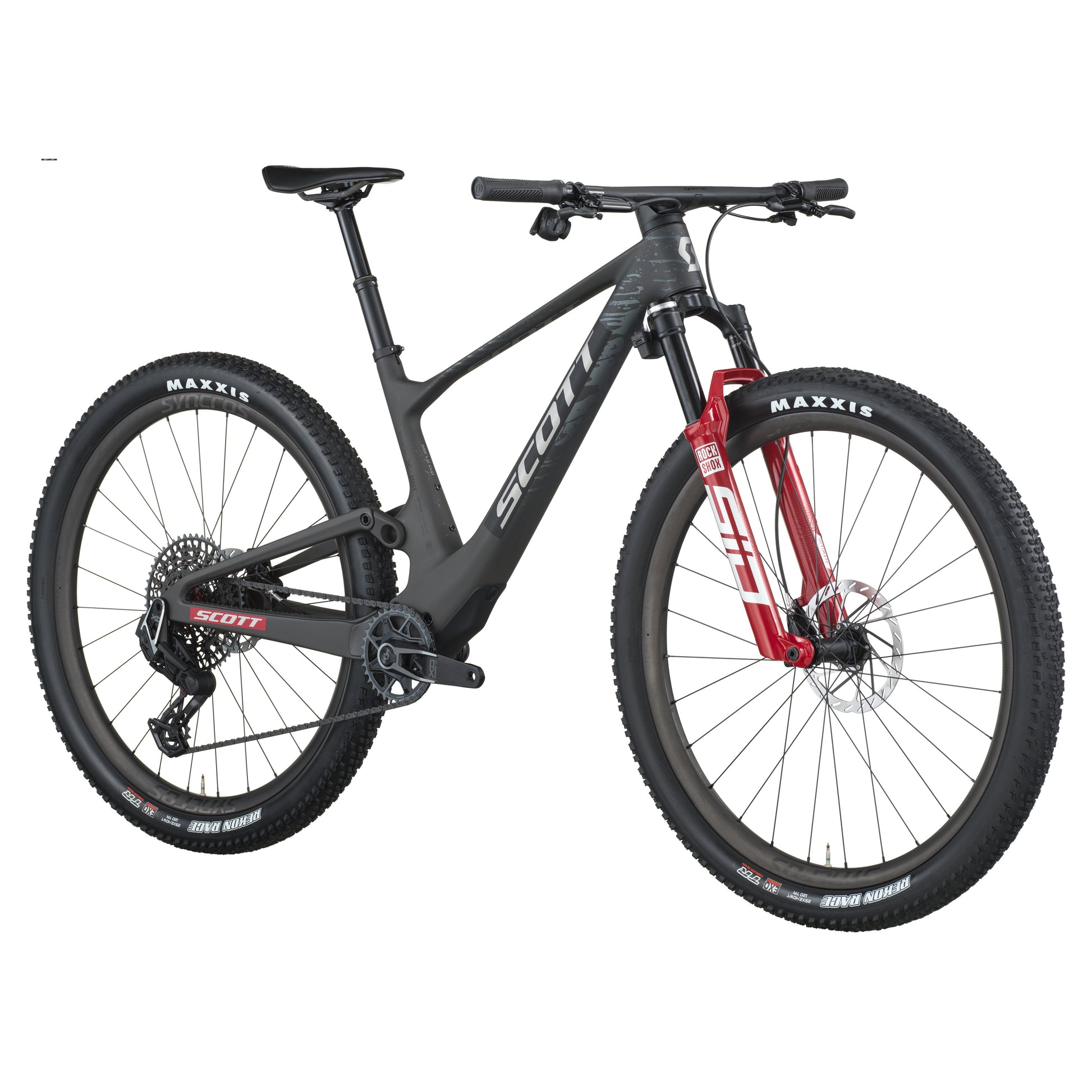 FRAME Spark RC Carbon HMF Integrated Suspension Technology Flex Pivot, Adjustable head angle Syncros Cable Integration System BB92, UDH Interface, 12x148mm with 55mm Chainline FORK RockShox SID Ultimate Flight Attendant Electronically controlled Suspension, FA Race Day damper 3 Modes 15x110mm Maxle Stealth, 44mm offset /Tapered steerer Lockout, Reb. Adj., 120mm travel REMOTE SYSTEM Automatic electronic suspension system that listens to the rider and responds in real-time REAR SHOCK RockShox SIDLuxe Ultimate Flight Attendant Custom Electronically controlled Suspension 3 Modes Lockout-Pedal-Descend Solo Air, Reb. Adj./ Lockout Bearing Hardware, Travel 120mm, T165X45mm REAR DERAILLEUR SRAM X0 Eagle AXS Transmission 12 Speed Wireless Electronic Shift System SHIFTERS SRAM AXS Rocker Pod Controller CRANKSET SRAM X0 Eagle Transmission Spindle Power Meter, DUB, 55mm CL, 34T BB-SET SRAM DUB PF 92 MTB Wide, shell 41x92mm CHAIN SRAM CN X0 Eagle Transmission CHAINGUIDE SCOTT custom CASSETTE SRAM X0 Eagle XS 1295 Transmission 10-52 BRAKES SRAM Motive Silver 4-Piston Disc ROTOR SRAM HS2 CL Rotors 180/F and 160/R |