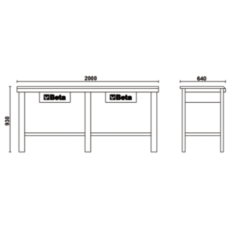- 2000x640x930mm