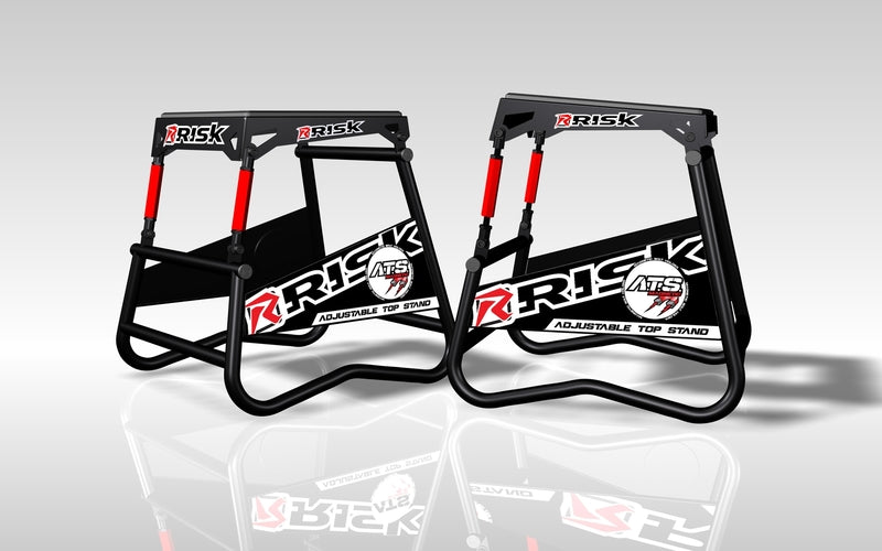 The chassis for every dirt bike brand, year, and model are designed a little differently, and as a result, not all bikes sit level on a traditional dirt bike stand. Subsequently the front or back tire often touches the ground when placed on a stand. The Risk Racing A.T.S. Stand solves this issue.